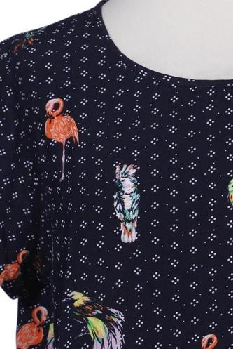 | Details | Kurzarm, Rundhals, verschlusslos, Motivprint |