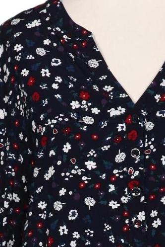 | Details | Langarm, V-Ausschnitt, verschlusslos, Floral |