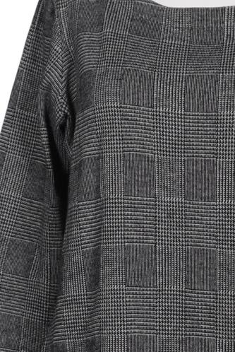 | Details | Grobstrick, Dreiviertelarm, Rundhals, Reißverschluss/Knöpfe hinten, Kariert |