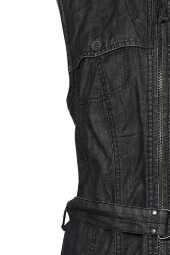 | Details | Jeans, ärmellos, Bindegürtel, Rundhals, Front Reißverschluss, Einfarbig |