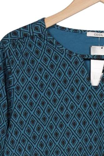 | Details | Jersey, Langarm, V-Ausschnitt, Rauten |