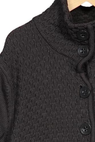 | Details | Grobstrick, Kurzarm, Bindegürtel, Rollkragen, Front Knopfleiste, Einfarbig |