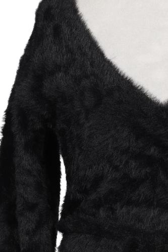 | Details | Webpelz, Grobstrick, Langarm, Bindegürtel, Wickeloptik, V-Ausschnitt, Einfarbig |