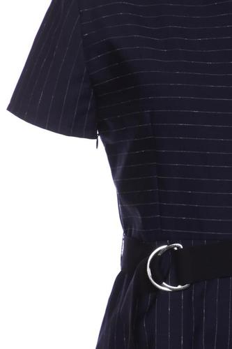 | Details | Kurzarm, Bindegürtel, Rundhals, Reißverschluss/Knöpfe hinten, Nadelstreifen |