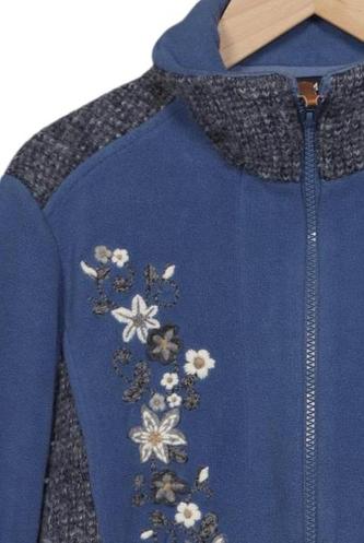 | Details | Stickerei, Fleece, Langarm, Rundhals, Front Reißverschluss, Floral |