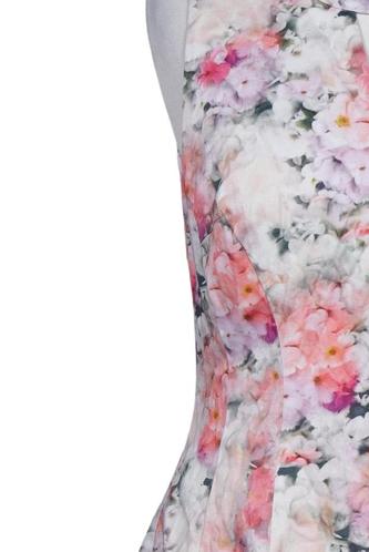 | Details | ärmellos, V-Ausschnitt, Reißverschluss/Knöpfe hinten, Floral |