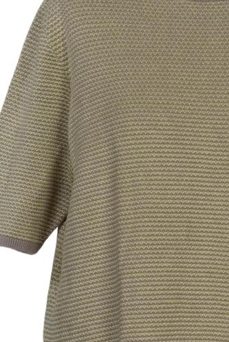 | Details | Grobstrick, Kurzarm, Rundhals, Reißverschluss/Knöpfe hinten, Streifen |