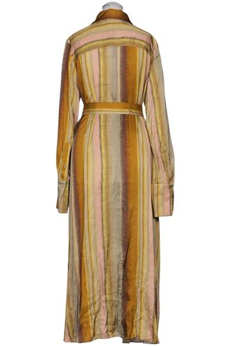| Details | Satin, Langarm, Bindegürtel, Rundhals, Front Knopfleiste, Streifen |
