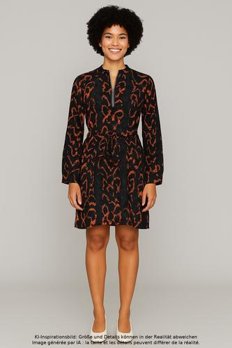 | Details | Langarm, Bindegürtel, V-Ausschnitt, Front Reißverschluss, Floral |