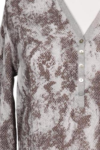 | Details | Jersey, Langarm, V-Ausschnitt, verschlusslos, Motivprint |