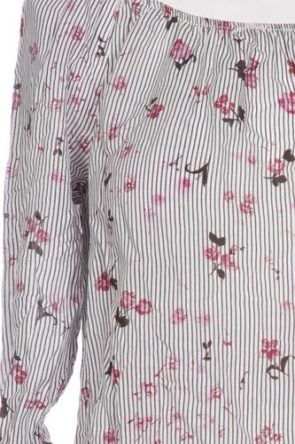 | Details | Jersey, Dreiviertelarm, Rundhals, verschlusslos, Gummizug/Tunnelzug, Floral, Streifen |