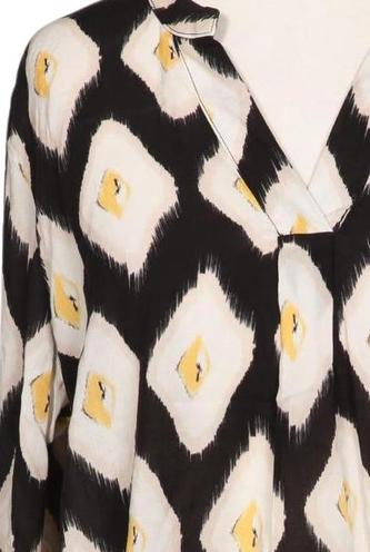 | Details | Langarm, V-Ausschnitt, verschlusslos, Rauten |