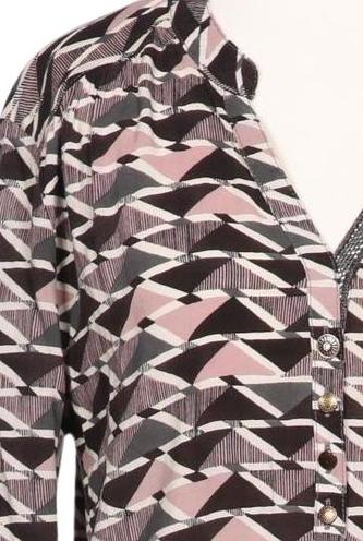 | Details | Jersey, Langarm, V-Ausschnitt, verschlusslos, Motivprint |