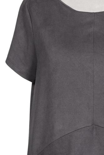 | Details | Wildlederoptik, Kurzarm, Rundhals, Einfarbig |