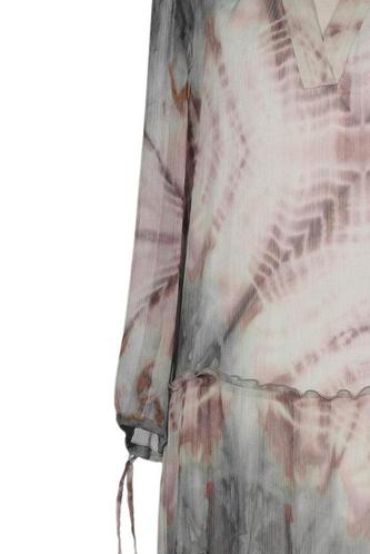 | Details | Rüschen, Chiffon, Dreiviertelarm, V-Ausschnitt, Gummizug/Tunnelzug, Batik |