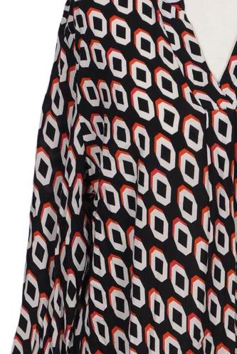 | Details | Jersey, Dreiviertelarm, V-Ausschnitt, Rauten |