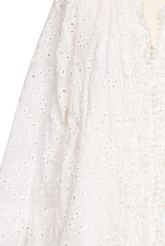 | Details | Spitze, Lochstickerei, Dreiviertelarm, V-Ausschnitt |