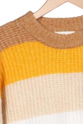 | Details | Grobstrick, Langarm, Rundhals, Streifen |
