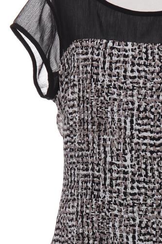 | Details | Chiffon, Kurzarm, Rundhals, Reißverschluss/Knöpfe hinten, Motivprint |