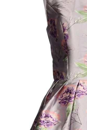 | Details | Satin, Plissee, ärmellos, Rundhals, Reißverschluss/Knöpfe hinten, Floral |