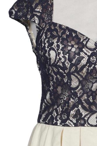 | Details | Spitze, Kurzarm, V-Ausschnitt, Reißverschluss/Knöpfe hinten, Floral |