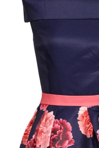 | Details | Satin, Plissee, ärmellos, V-Ausschnitt, Reißverschluss/Knöpfe hinten, Floral |