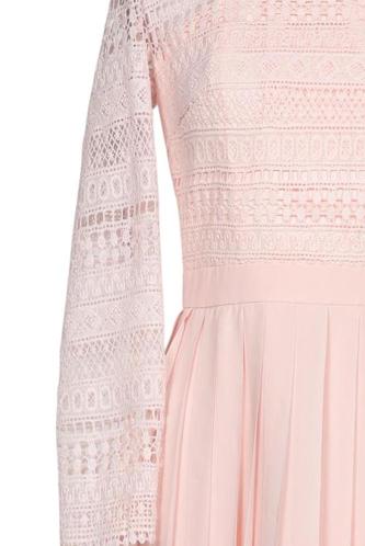 | Details | Spitze, Plissee, Langarm, Rundhals, Reißverschluss/Knöpfe hinten |