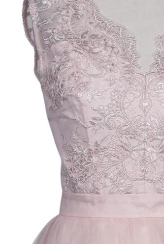 | Details | Tüll, ärmellos, V-Ausschnitt, Reißverschluss/Knöpfe hinten, Floral |