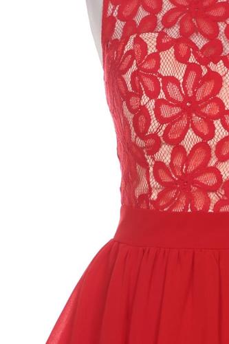 | Details | Spitze, Rüschen, Chiffon, ärmellos, Rundhals, Reißverschluss/Knöpfe hinten, Floral |