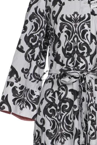 | Details | Dreiviertelarm, Bindegürtel, Rundhals, Front Knopfleiste, Floral |