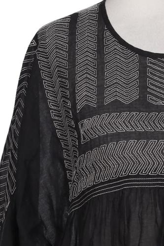 | Details | Stickerei, Chiffon, Dreiviertelarm, Rundhals, verschlusslos, Ethno |