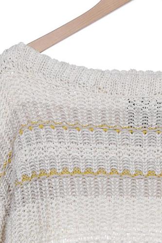 | Details | Fransen, Grobstrick, Langarm, Rundhals, Streifen |