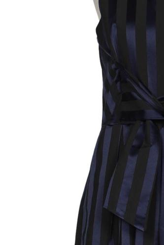 | Details | Satin, ärmellos, Bindegürtel, Rundhals, Reißverschluss/Knöpfe hinten, Streifen |