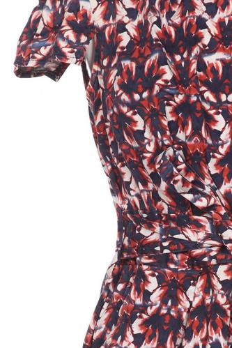 | Details | Jersey, Kurzarm, Bindegürtel, Rundhals, Reißverschluss/Knöpfe hinten, Floral |