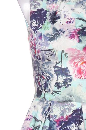 | Details | Plissee, ärmellos, Rundhals, Reißverschluss/Knöpfe hinten, Floral |