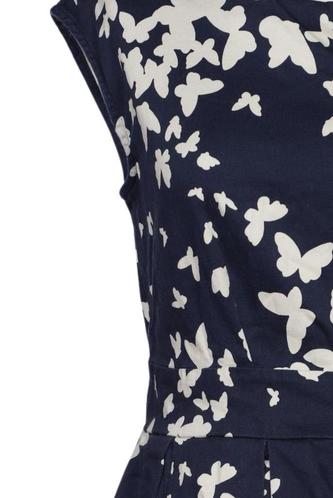 | Details | Plissee, Kurzarm, Bindegürtel, V-Ausschnitt, Reißverschluss/Knöpfe hinten, Floral |