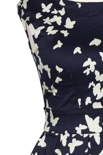 | Details | Satin, Plissee, ärmellos, Bindegürtel, V-Ausschnitt, Reißverschluss/Knöpfe hinten, Floral |