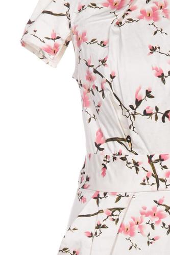 | Details | Kurzarm, Rundhals, Reißverschluss/Knöpfe hinten, Floral |