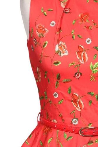 | Details | ärmellos, Bindegürtel, Rundhals, Reißverschluss/Knöpfe hinten, Floral |
