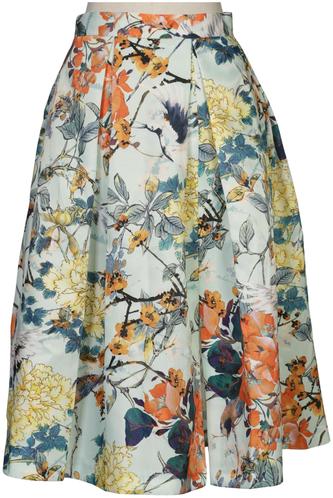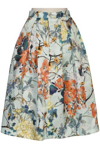 | Details | Satin, Plissee, Seitreißverschluss, Floral |