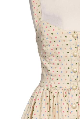 | Details | ärmellos, V-Ausschnitt, Reißverschluss/Knöpfe hinten, Punkte |