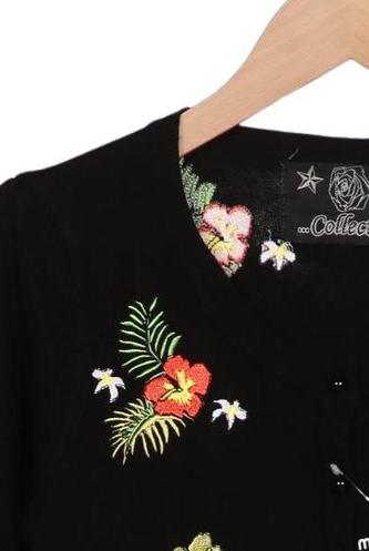 | Details | Stickerei, Grobstrick, Kurzarm, Rundhals, Front Knopfleiste, Floral |