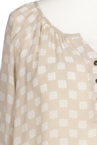 | Details | Langarm, V-Ausschnitt, Front Knopfleiste, Punkte |