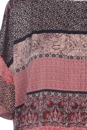 | Details | Satin, Kurzarm, Rundhals, verschlusslos, Ethno, Streifen |