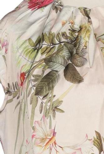 | Details | Satin, Kurzarm, Rundhals, verschlusslos, Floral |
