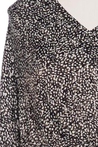 | Details | Satin, Jersey, Langarm, V-Ausschnitt, verschlusslos, Reißverschluss/Knöpfe hinten, Leopard, Motivprint |