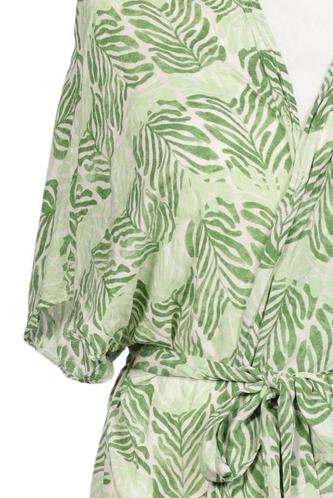 | Details | Kurzarm, Bindegürtel, Wickeloptik, V-Ausschnitt, verschlusslos, Motivprint |