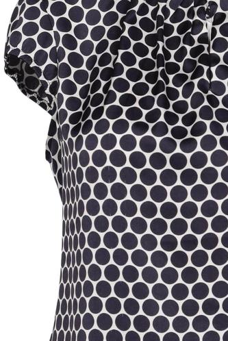 | Details | Satin, Kurzarm, Rundhals, verschlusslos, Punkte |