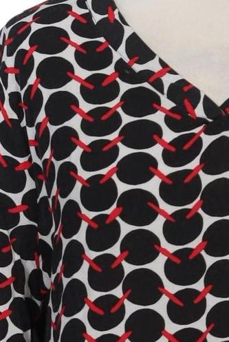 | Details | Chiffon, Langarm, V-Ausschnitt, verschlusslos, Punkte |