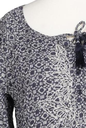 | Details | Fransen, Jersey, Stickerei, Dreiviertelarm, Rundhals, verschlusslos, Floral |